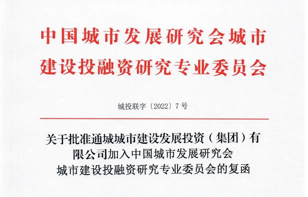 近日,中國城市發(fā)展研究會城市建設(shè)投融資研究專業(yè)委員會(簡稱“全國城投協(xié)會”)發(fā)來復(fù)函,批準(zhǔn)通城城發(fā)集團(tuán)加入全國城投協(xié)會。根據(jù)全國城投協(xié)會章程第一條:中國城市建設(shè)投融資研究會是全國地...